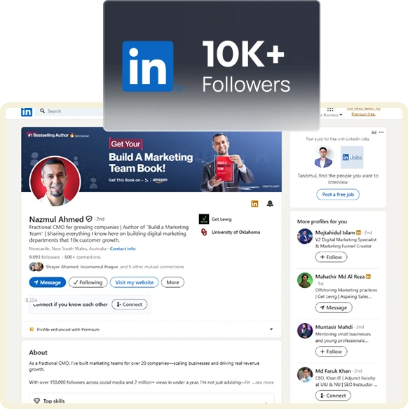 At Nazm C, we're not just marketers; we're architects of market leaders. Led by Nazmul Ahmed, a visionary in the realm of digital marketing, our team is dedicated to crafting bespoke solutions that elevate your brand to the forefront of your industry.